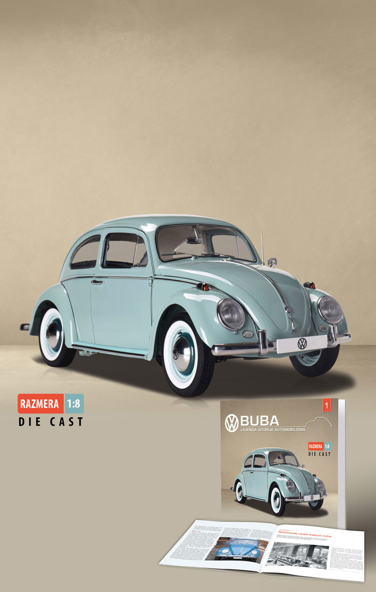 Kolekcija je sačinjena od 100 brojeva. U svakom broju ćete naći časopis i komponente za sastavljanje fantastične makete automobila Buba u razmeri 1:8. Izvanredna maketa od kalupno livenog metala i kvalitetnih plastičnih materijala sa iznenađujućim efektima: svetlosnim i zvučnim. A uz to, u svakom broju ćete naći i uputstvo za montažu, kao i priče o Bubi koje će vas oduševiti. U bogato ilustrovanim brojevima časopisa detaljno se prati istorija Volkswagen-a. Posebna rubrika je posvećena je najznačajnijim modelima automobilske kuće iz Wolfsburg-a i zanimljivim detaljima o njihovim tehničkim karakteristikama.